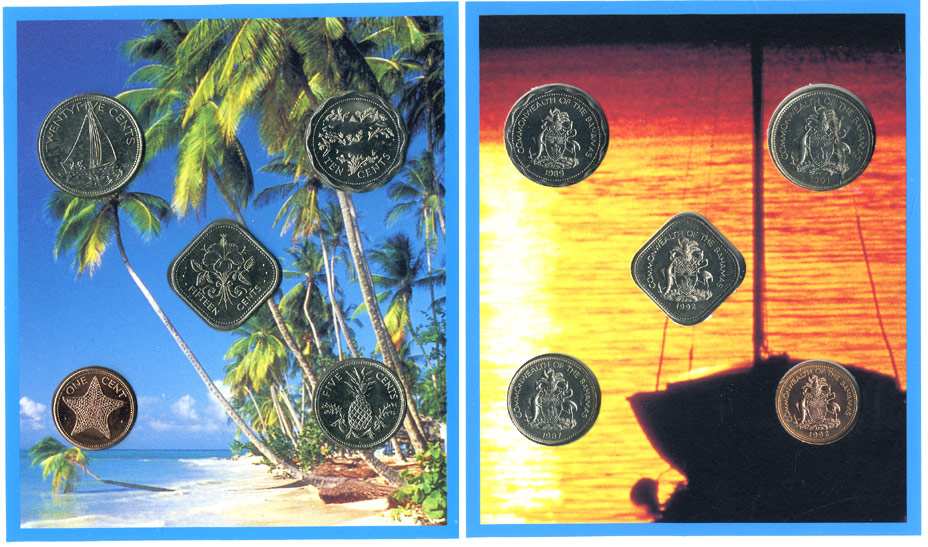 Багамские острова набор из 5 монет 1992 официальный набор, в картонном буклете UNC 2-6-3-15