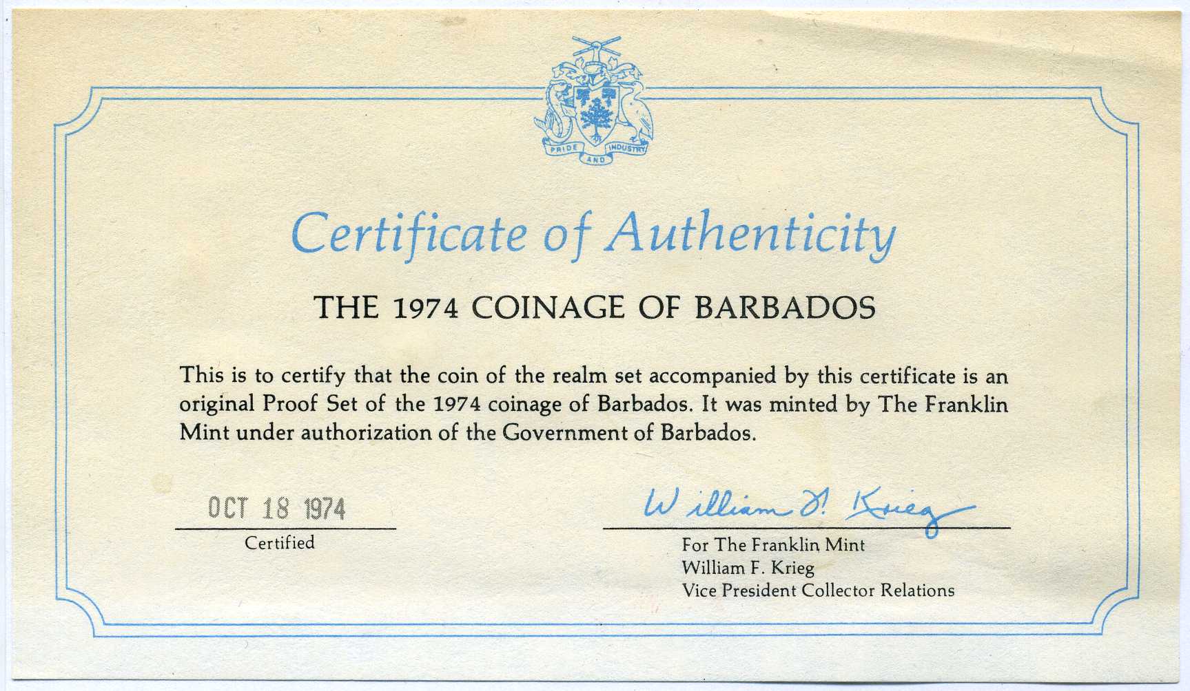 Барбадос набор из 8 монет 1974 в оригинальной коробке, с сертификатом KM Ps 2 PROOF 3-6-1-36
