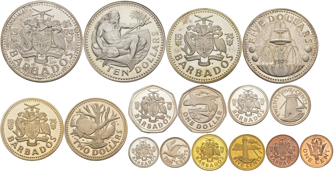 ----Барбадос набор из 8 монет 1974 в оригинальной коробке, с сертификатом KM Ps 2 PROOF 3-6-1-36