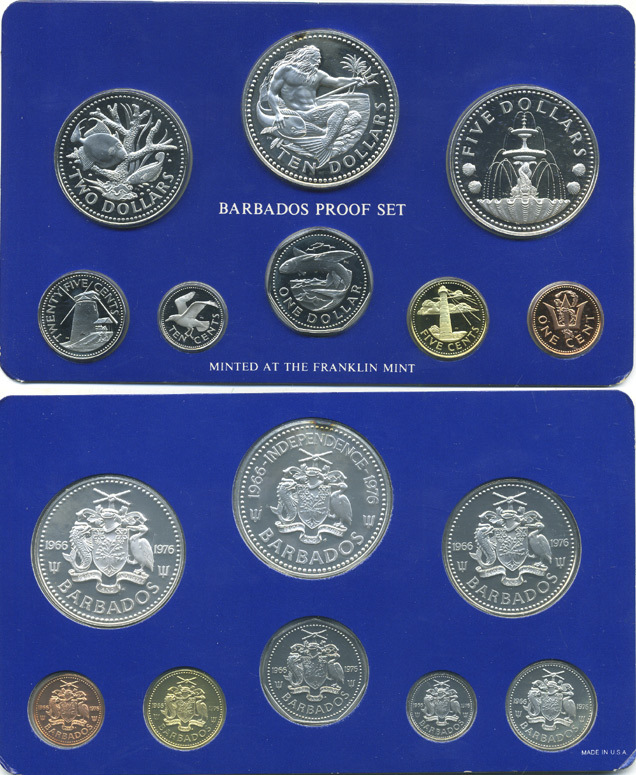 Барбадос набор из 8 монет 1976 10 лет независимости, в запайке в оригинальной коробке KM PS 4, KM (19-24, 25a, 26a) серебро PROOF 2-6-3-01