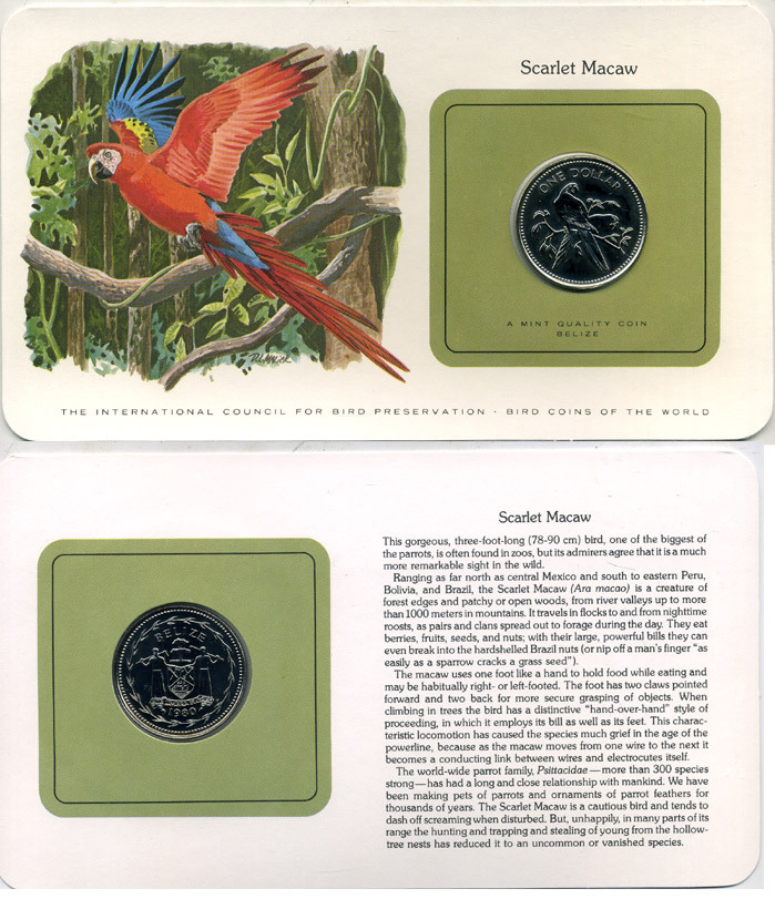 БЕЛИЗ 1 ДОЛЛАР 1980 СЕРИЯ МОНЕТЫ МИРА С ИЗОБРАЖЕНИЕМ ПТИЦ, В ОРИГИНАЛЬНОМ БУКЛЕТЕ С ОПИСАНИЕМ KM 43 медно-никель UNC 5121-15