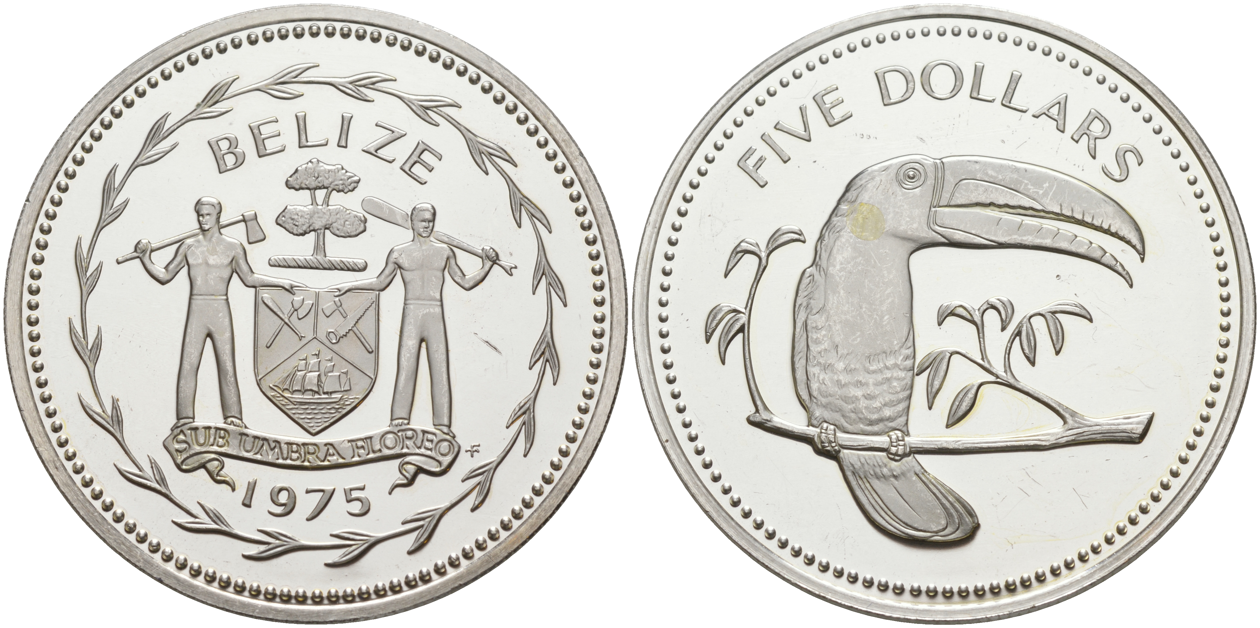 БЕЛИЗ 5 ДОЛЛАРОВ 1975 ТУКАН KM 44 медно-никель PROOF 1091-7-42
