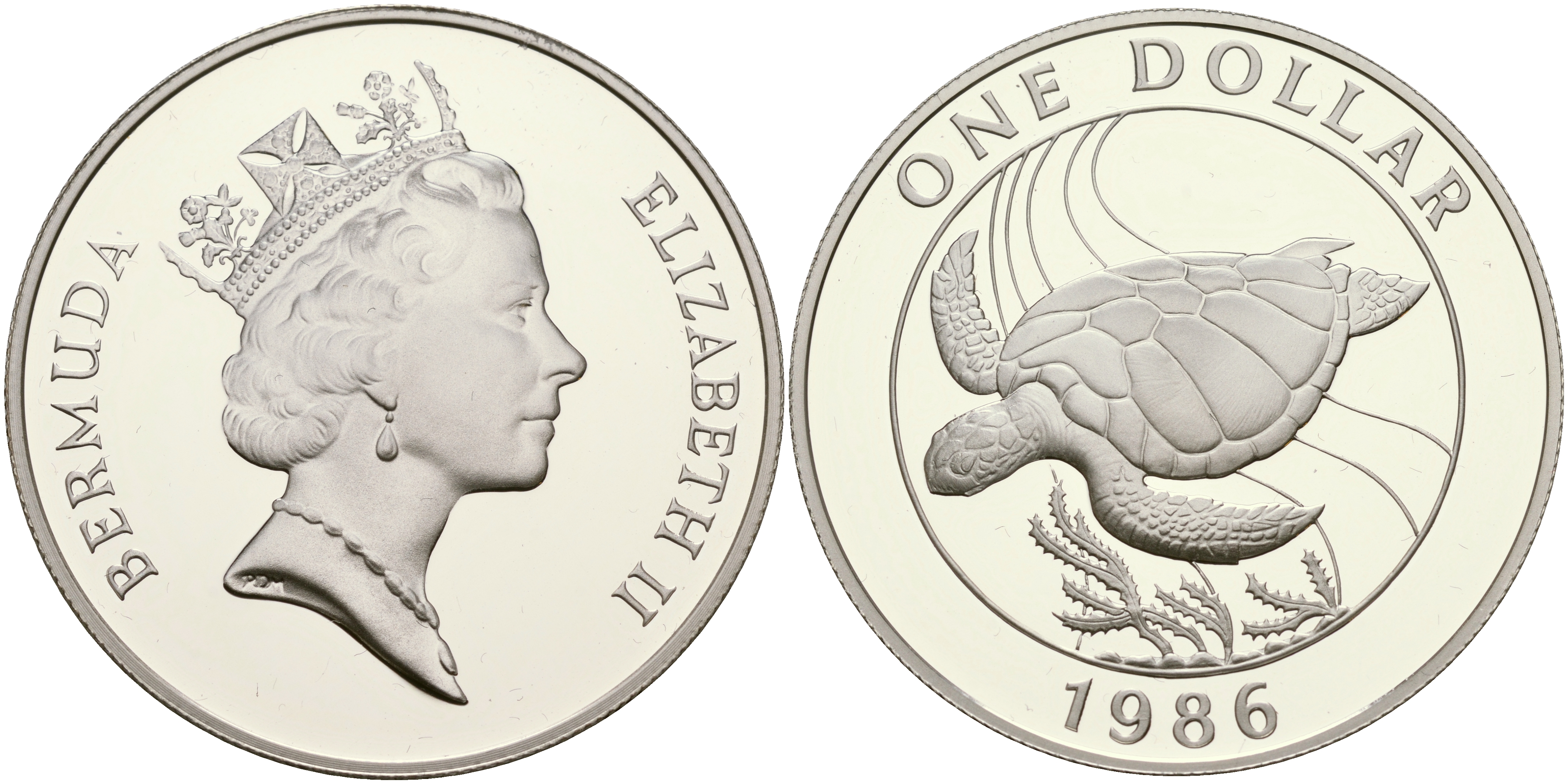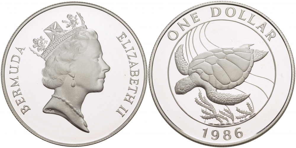 Бермудские острова 1 доллар 1986 серия 25 лет защиты окружающей среды, морская черепаха КМ 49 a серебро PROOF 1068-5-53