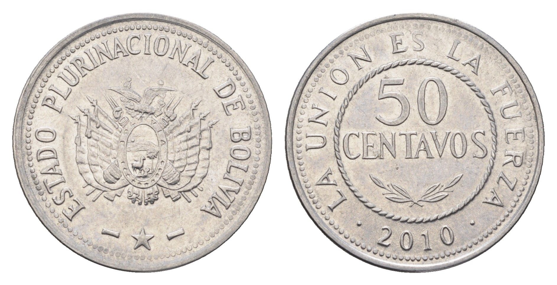 Боливия 50 сентаво 2010 KM 216 нержавеющая сталь 4663-741