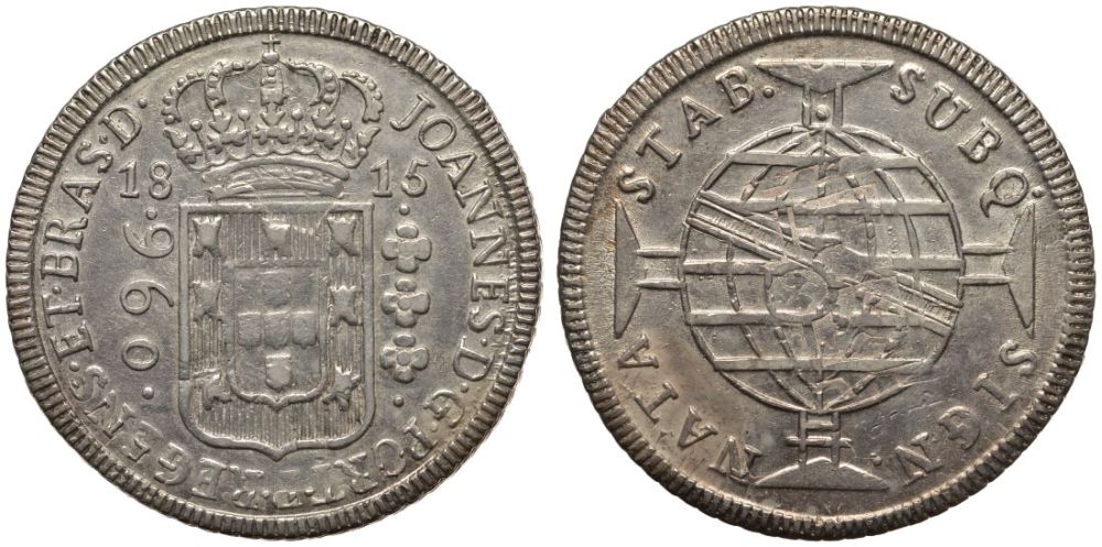 ----Бразилия 960 рейс 1815 монетный двор не прочеканен, перечекан, патина, Жоао принц-регент (1799-1818) KM 307 серебро 00-819-27