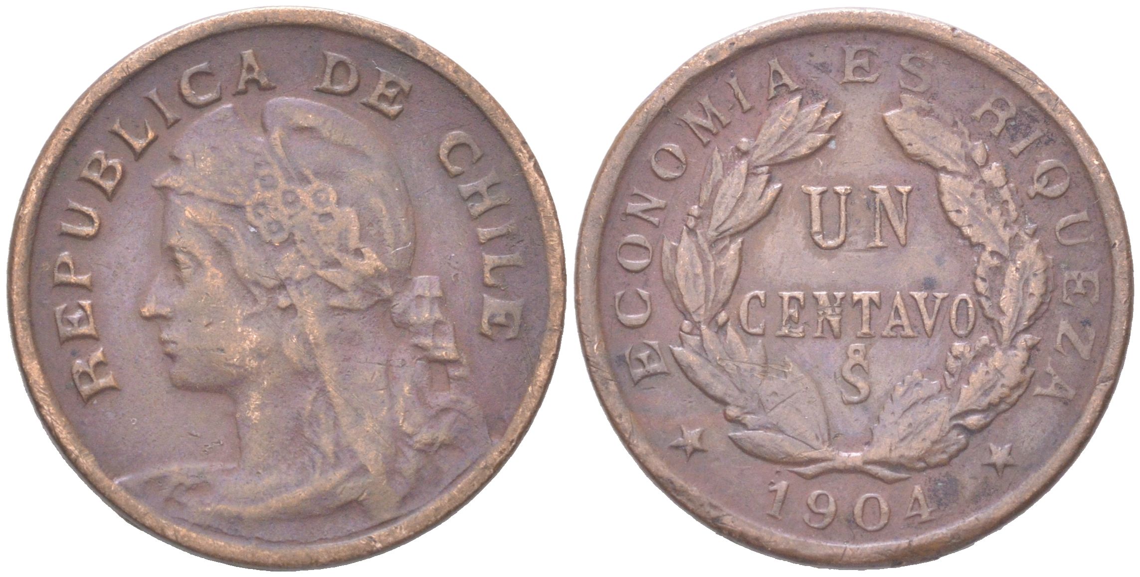 Чили 1 сентаво 1904 KM 161.1 медь 4621-711