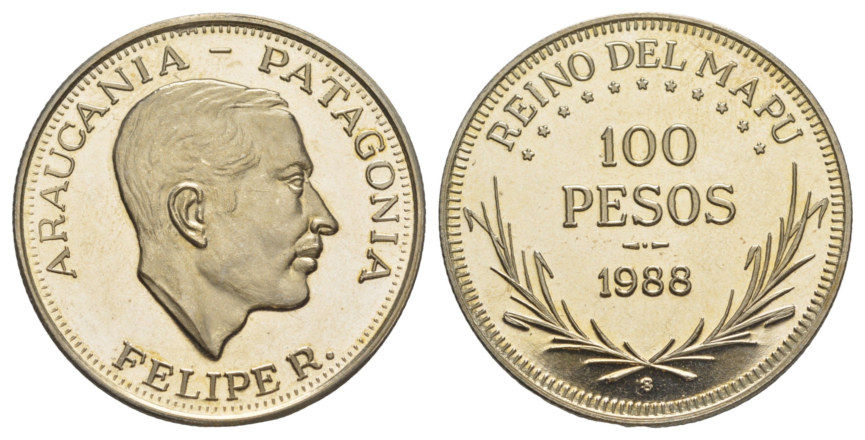 ----Араукания и Патагония 100 песо 1988 Филипп I ( 1951-2014 ) X 22 медно-никель 1521-945
