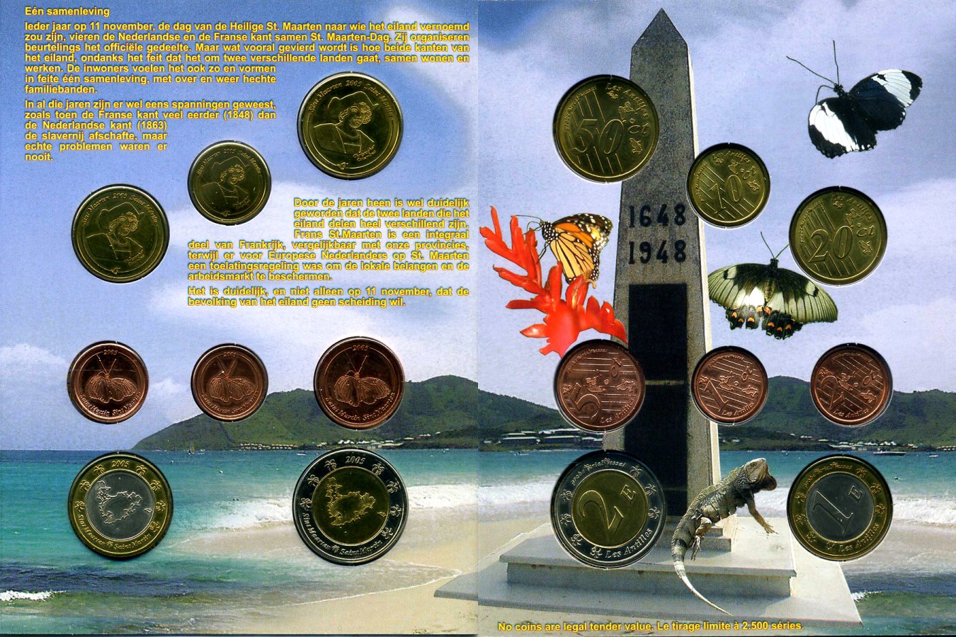 Остров Сен-Мартен набор из 8 монет 2005 1 евроцент-2 евро, европробники, в оригинальном буклете UNC 00-00-00