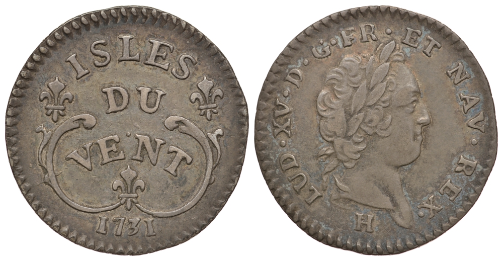 ----Наветренные острова (Windward, Вент) 12 сол 1731 H, Людовик XV (1715-1774) серебро 10-016-28