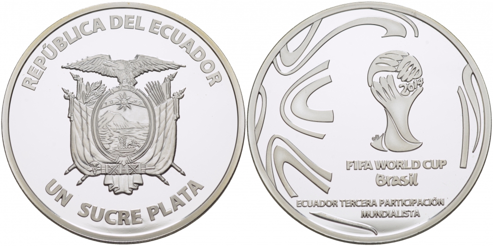 Эквадор 1 сукре 2014 чемпионат мира по футболу в Бразилии, кубок FIFA KM NEW серебро PROOF 01-148-33