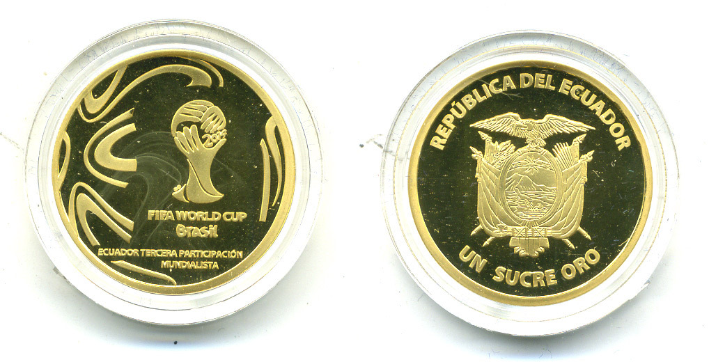 Эквадор 1 сукре 2014 чемпионат мира по футболу в Бразилии, в оригинальной коробке золото PROOF 00-00