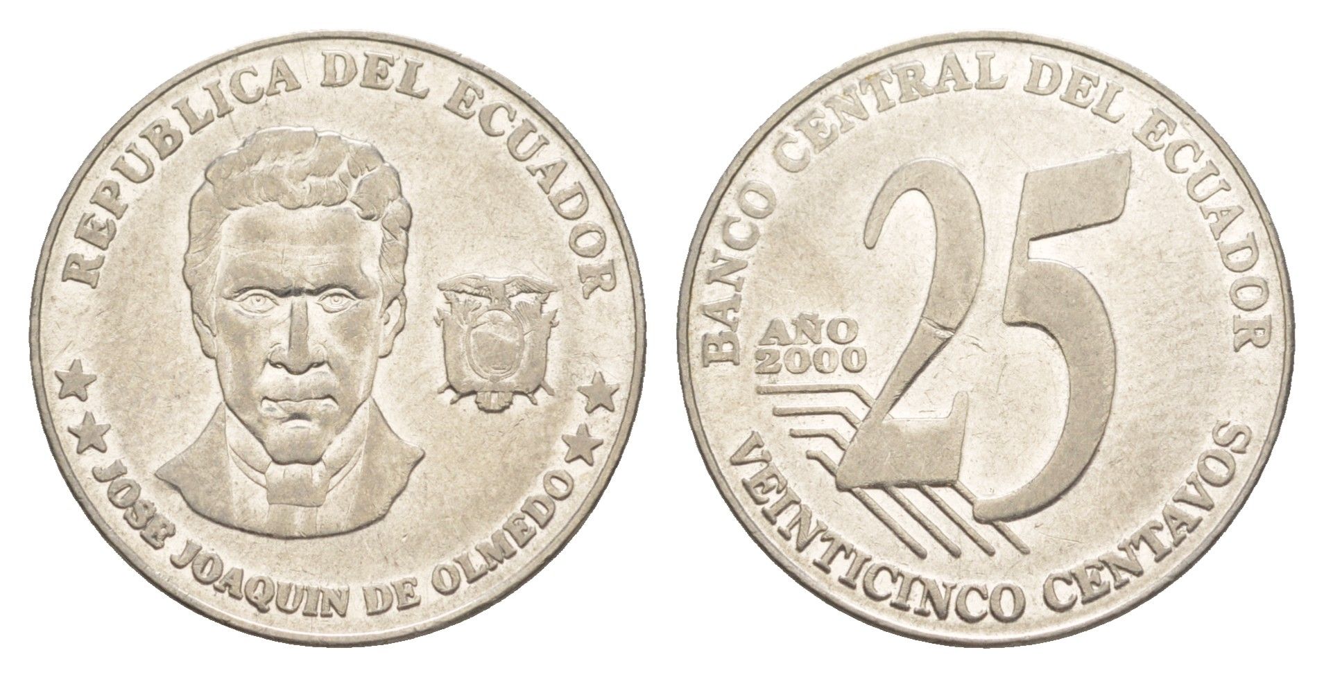 Эквадор 25 сентаво 2000 KM 107 нержавеющая сталь 4641-556