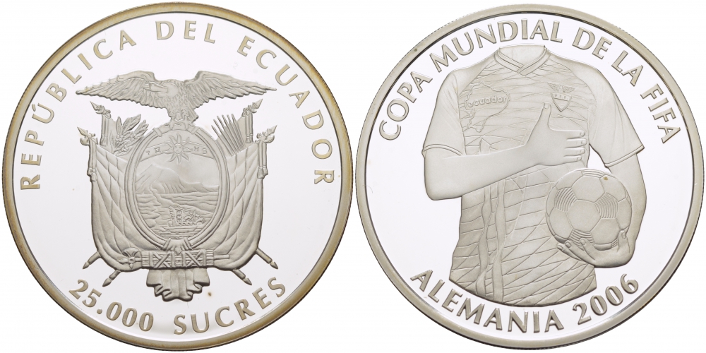 Эквадор 25000 сукре 2006 чемпионат мира по футболу в Германии 2006 KM 114 серебро PROOF 01-153-15