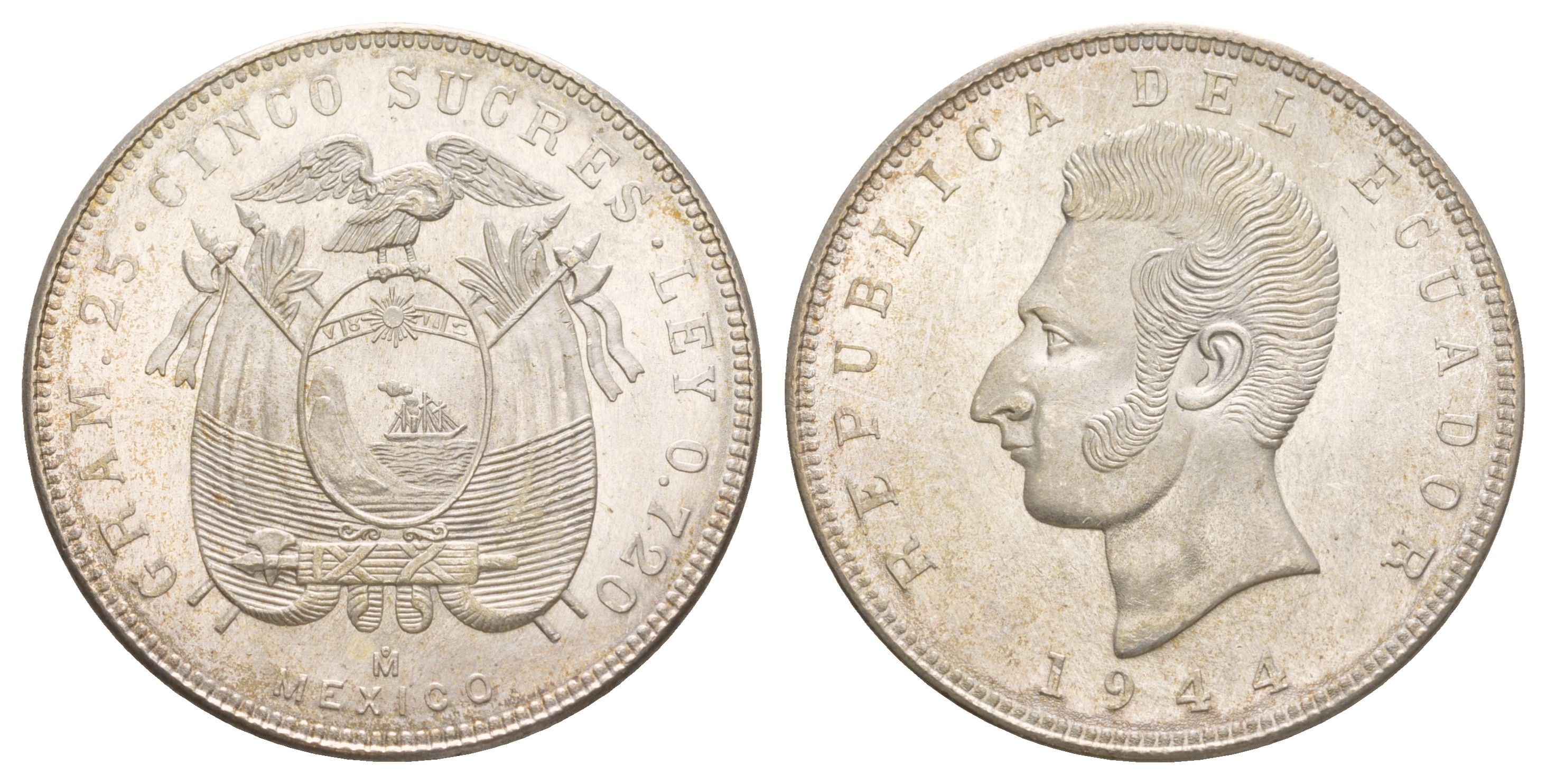 Эквадор 5 сукре 1944 KM 79 серебро UNC 11-152-11