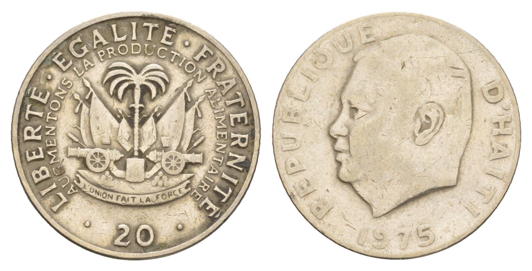 ----Гаити 20 сантимов 1975 ФАО, Президент Жан-Клод Дювалье KM 100 медно-никель 4654-611