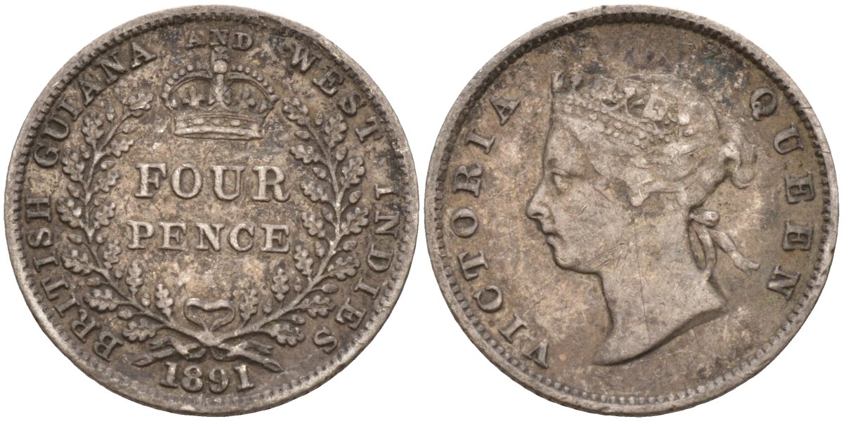 Британская Гвиана и Вест-Индия 4 пенса 1891 Виктория (1837-1901) KM 26 серебро 633-1735