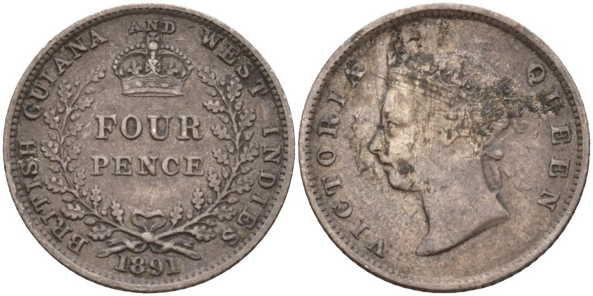 Британская Гвиана и Вест-Индия 4 пенса 1891 Виктория (1837-1901) KM 26 серебро 633-1811