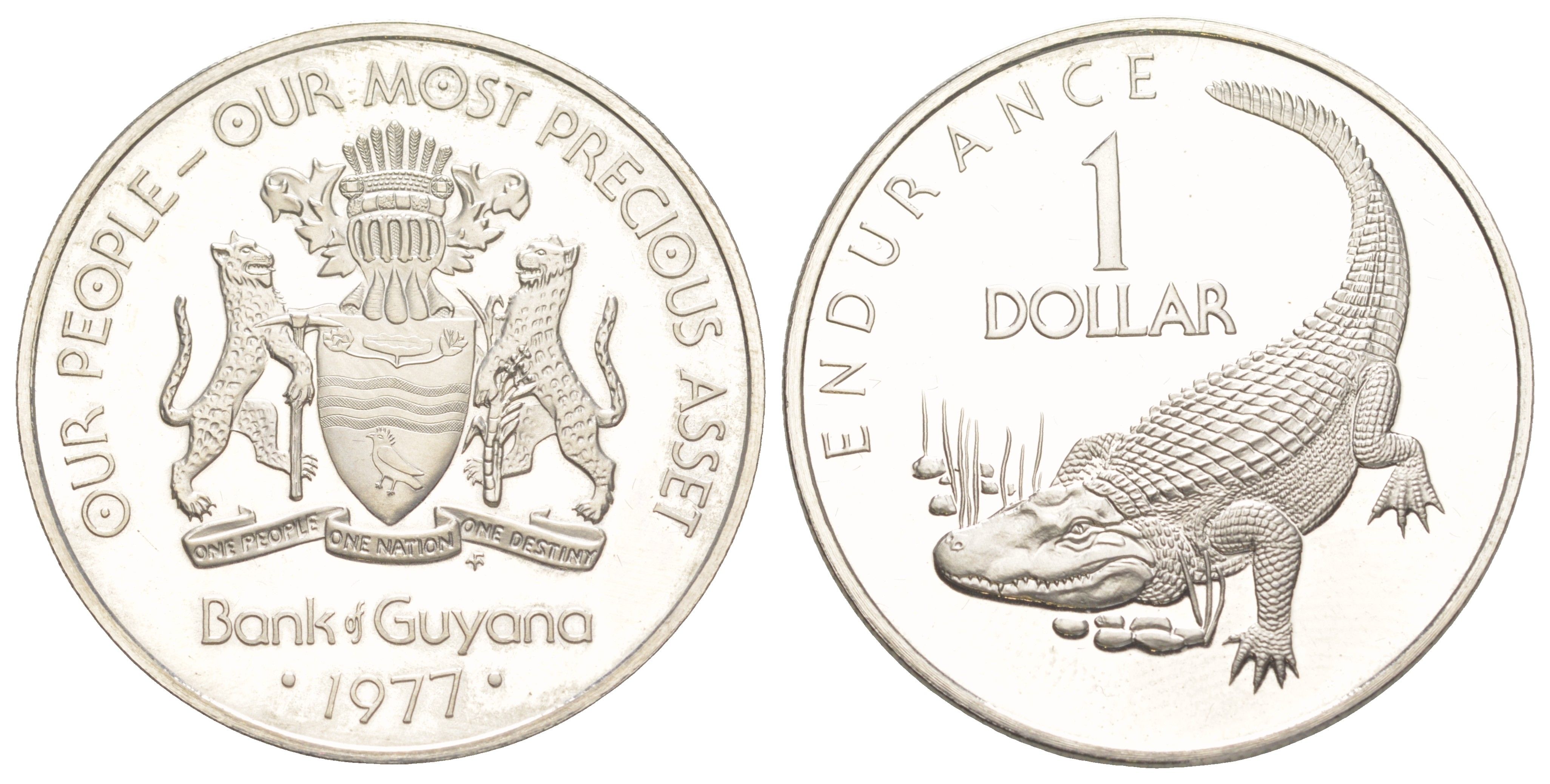 ----Гайана 1 доллар 1977 FM, тираж 7.215 экземпляров KM 42 медно-никель PROOF 3896-1615