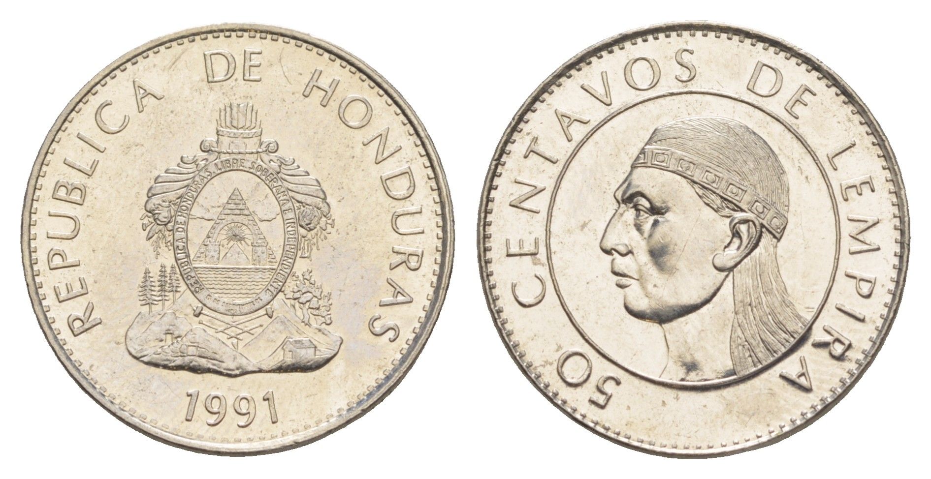 Гондурас 50 сентаво 1991 KM 84a.1 сталь плакированная никелем UNC 4642-821