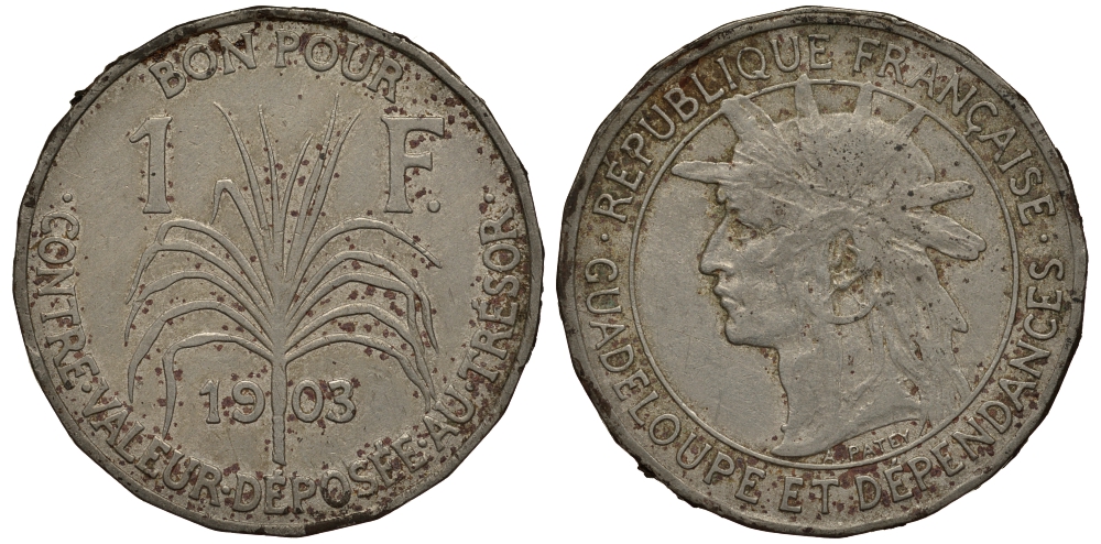 Гваделупа 1 франк 1903 KM 46 медно-никель 272-741