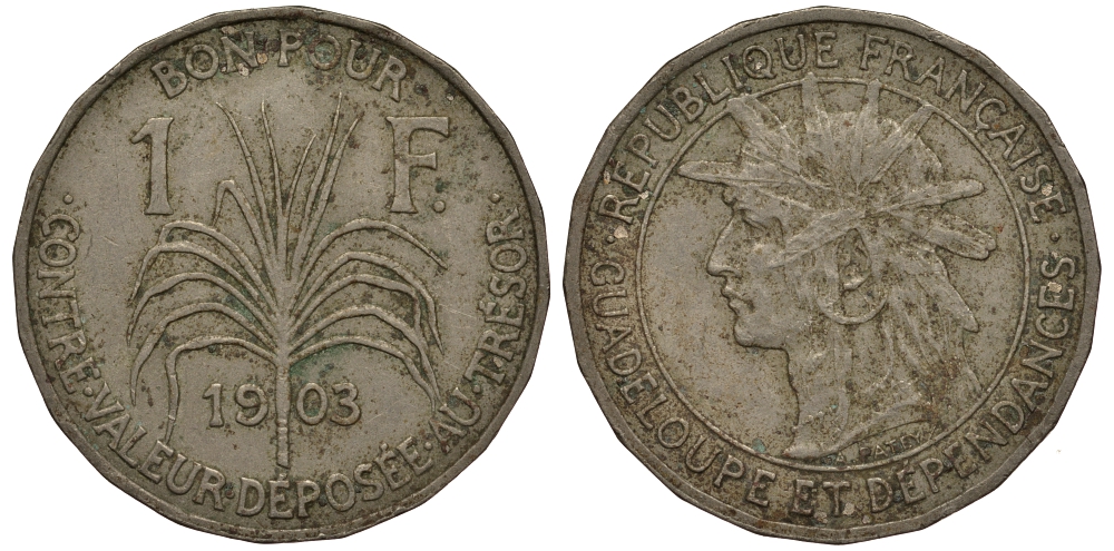 Гваделупа 1 франк 1903 KM 46 медно-никель 272-742