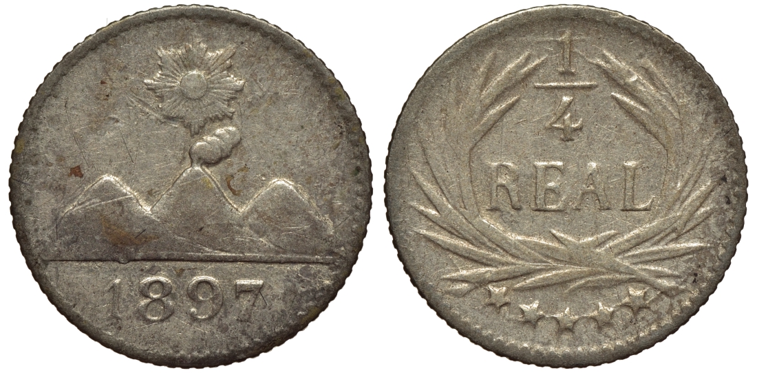 Гватемала 1/4 реала 1897 5 звезд, Испанское правление KM 162 серебро 112-865