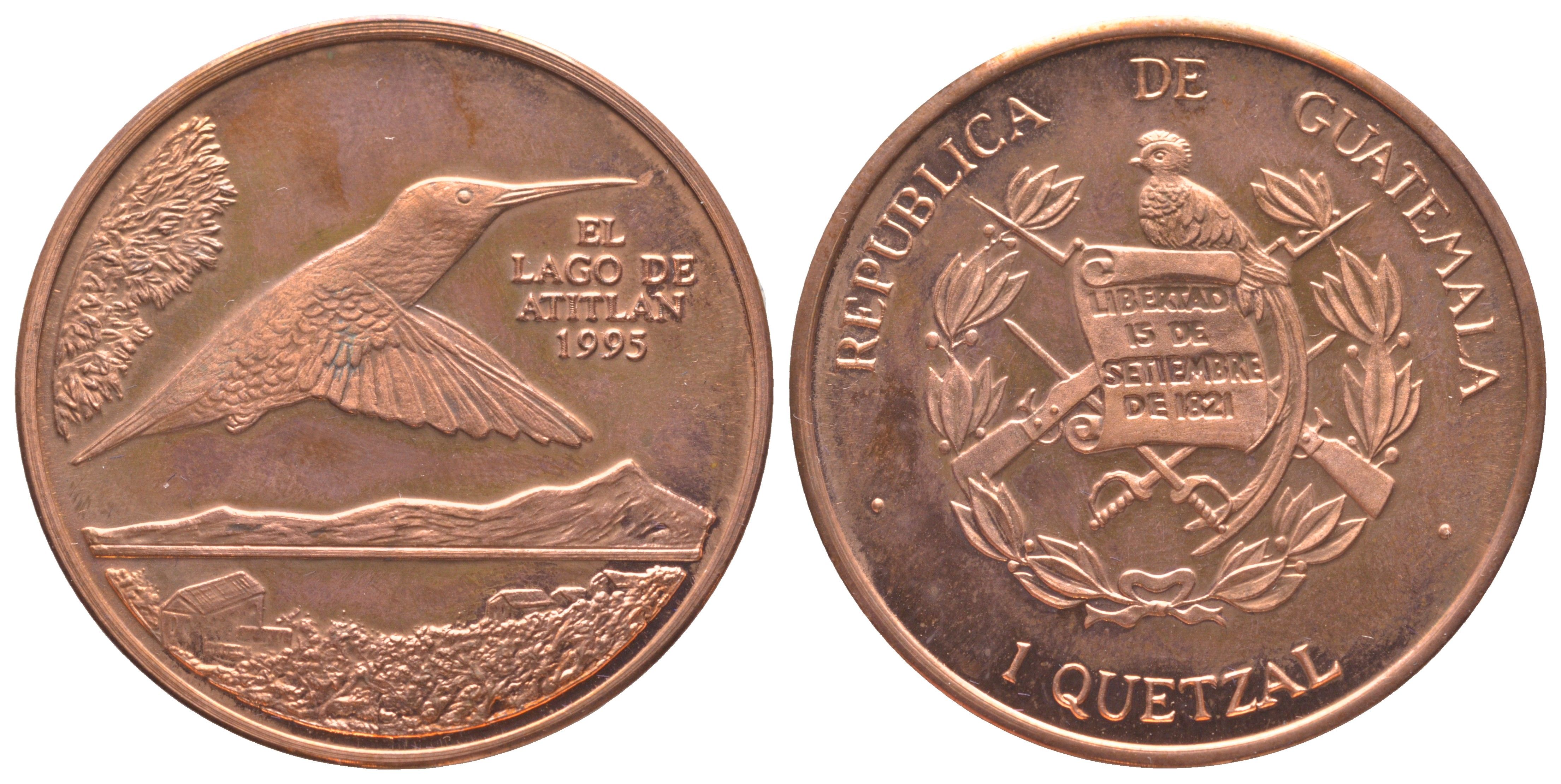 Гватемала 1 кетсаль 1995 пробная монета KM 1e медь UNC 3896-1634