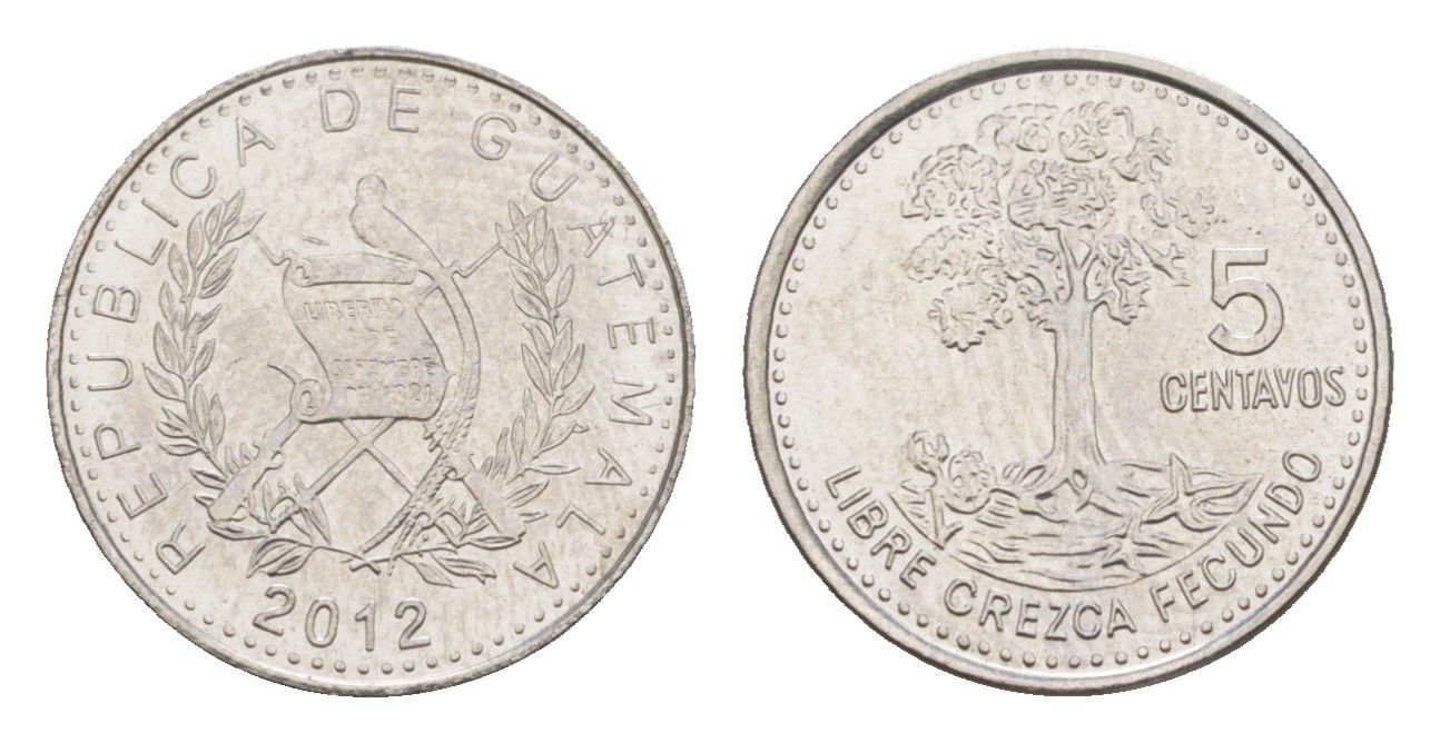 Гватемала 5 сентаво 2012 KM 276.6a сталь плакированная никелем UNC 4644-262