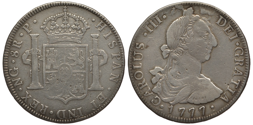 ----Гватемала 8 реалов 1777 P, Карл III KM 36.2 серебро 00-811-34