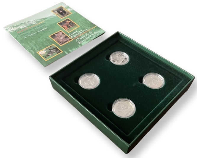Канада набор из 4 монет по 50 центов 1996 серия природа, детеныши диких животных, в оригинальной коробке, сертификат KM 283, 284, 285, 286 серебро PROOF 4-4-1-51