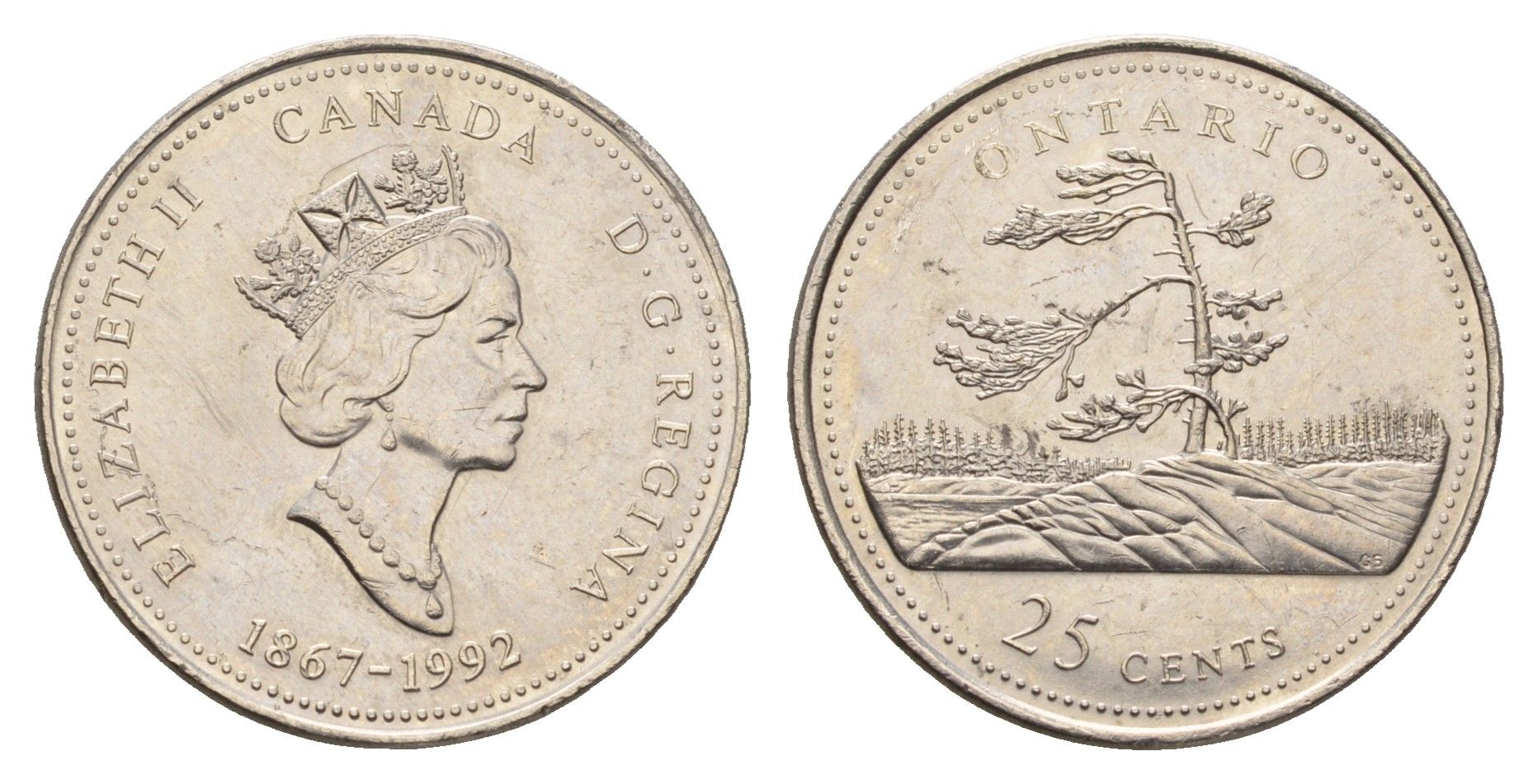-----Канада 25 центов 1992 125 лет Конфедерации Канада - Онтарио KM 223 никель aUNC 113-627