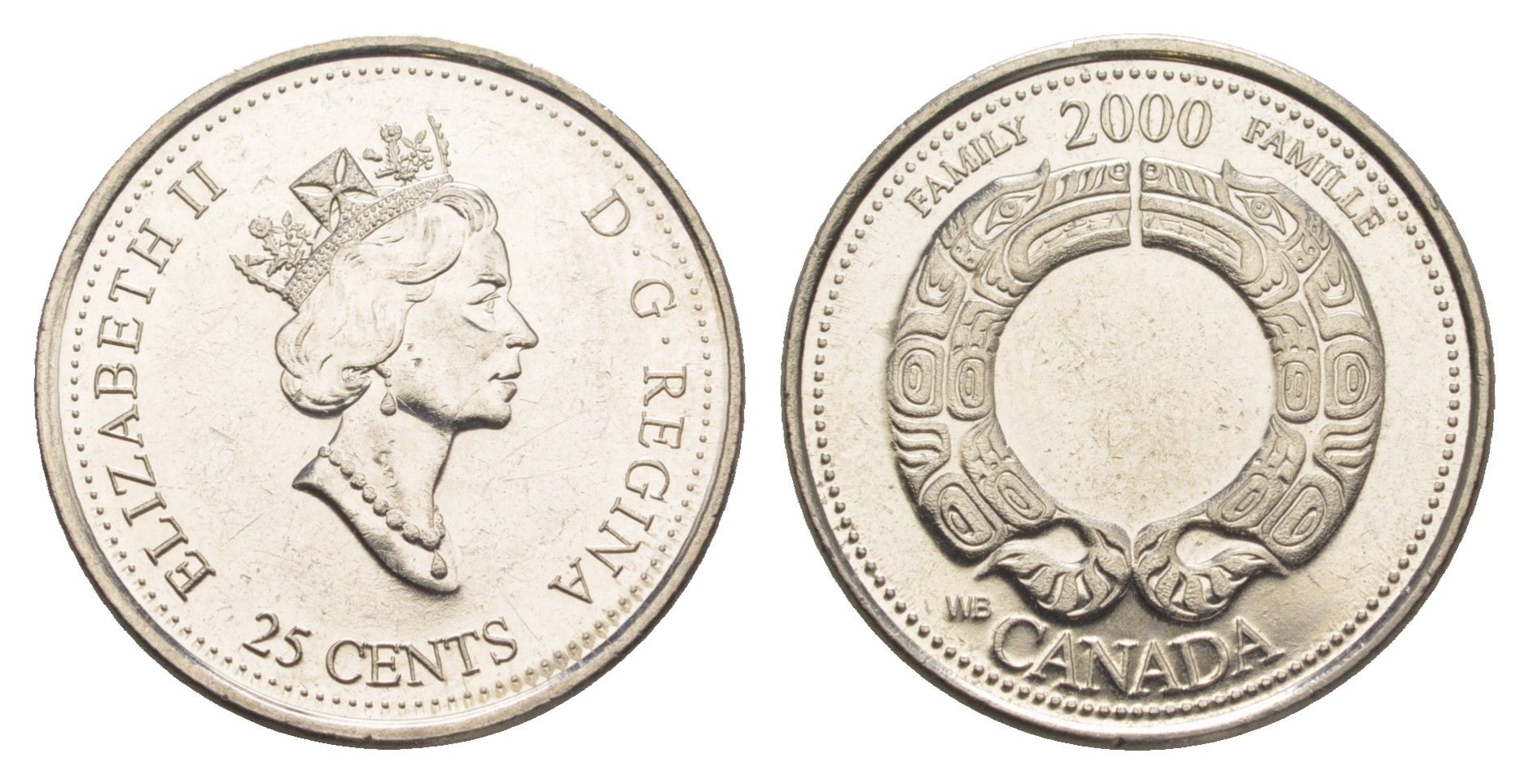 Канада 25 центов 2000 Миллениум - Семья KM 375 сталь плакированная никелем aUNC 4637-924