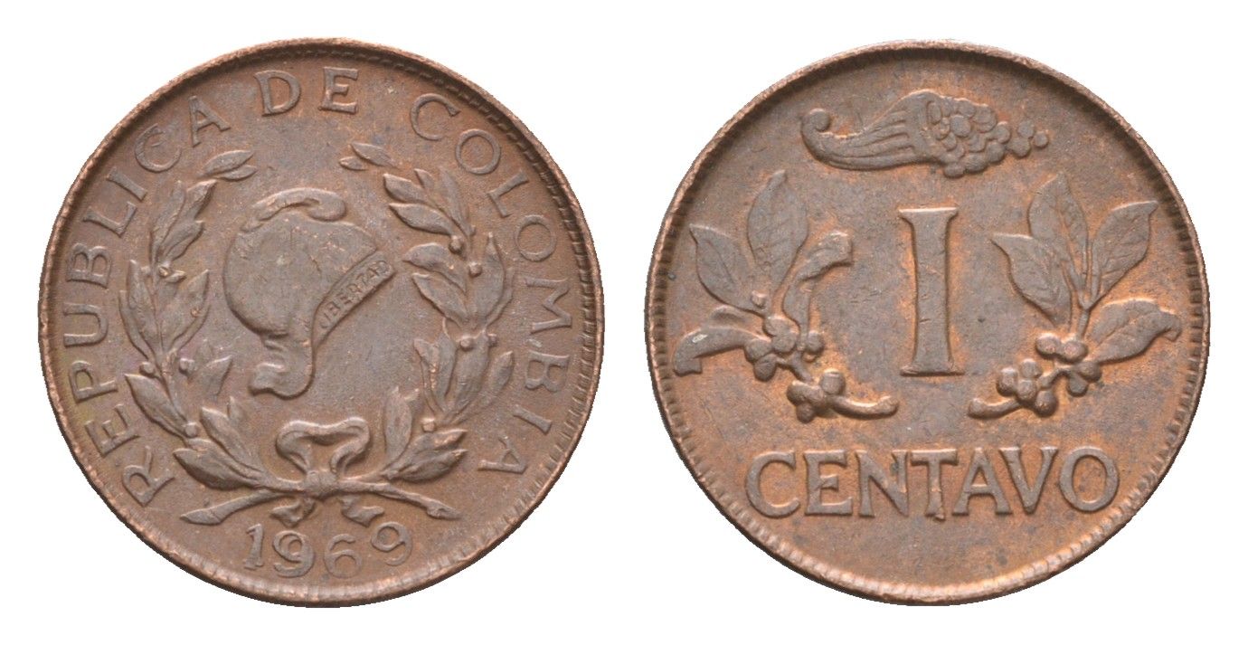 Колумбия 1 сентаво 1969 KM 205a сталь плакированная медью 4664-463