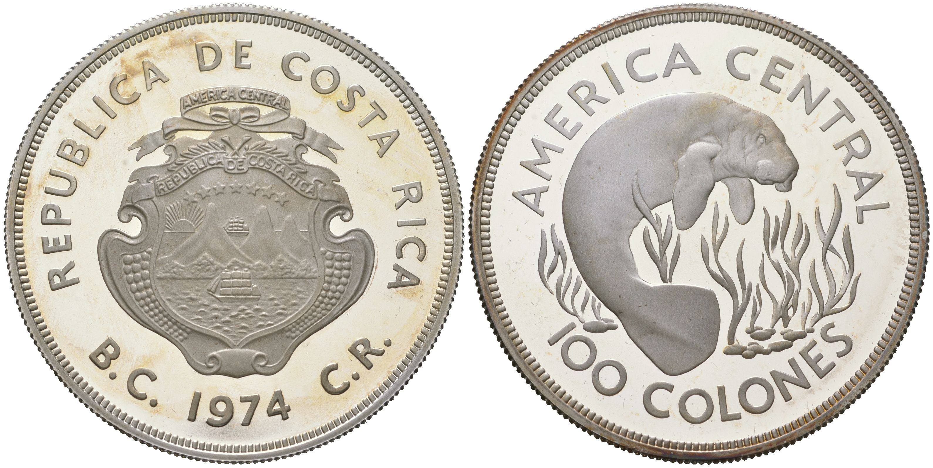 ----Коста-Рика 100 колонов 1974 Охрана природы KM 201a серебро PROOF 11-321-15