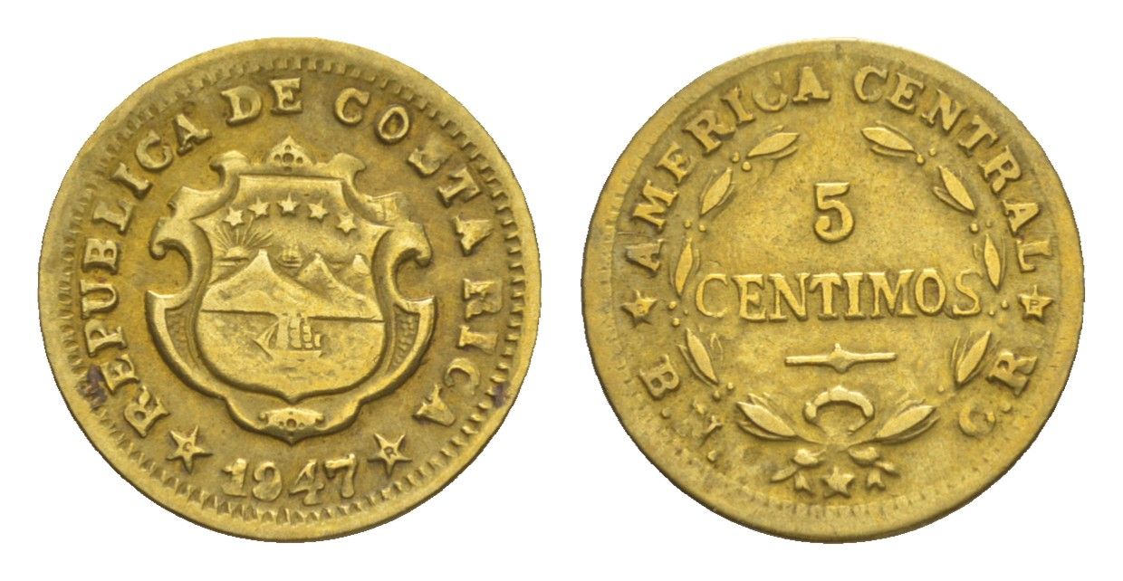 Коста-Рика 5 сентимо 1947 KM 179 латунь 1522-545