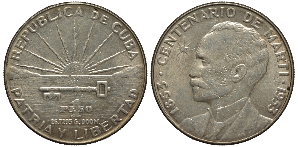 Куба 1 песо 1953 100 лет со дня рождения Хосе Марти KM 29 серебро 650-344