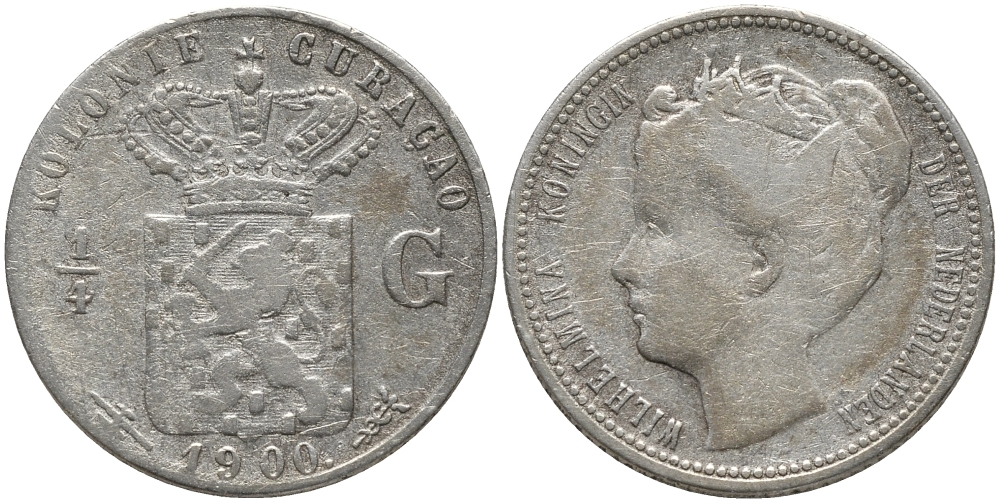 КЮРАСАО 1/4 ГУЛЬДЕНА 1900 ВИЛЬГЕЛЬМИНА KM 35 серебро 4387-953