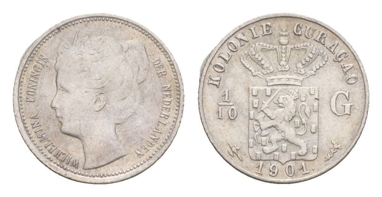 Нидерландское Кюрасао 1/10 гульдена 1901 Вильгельмина, год-тип KM 36 серебро 1518-511