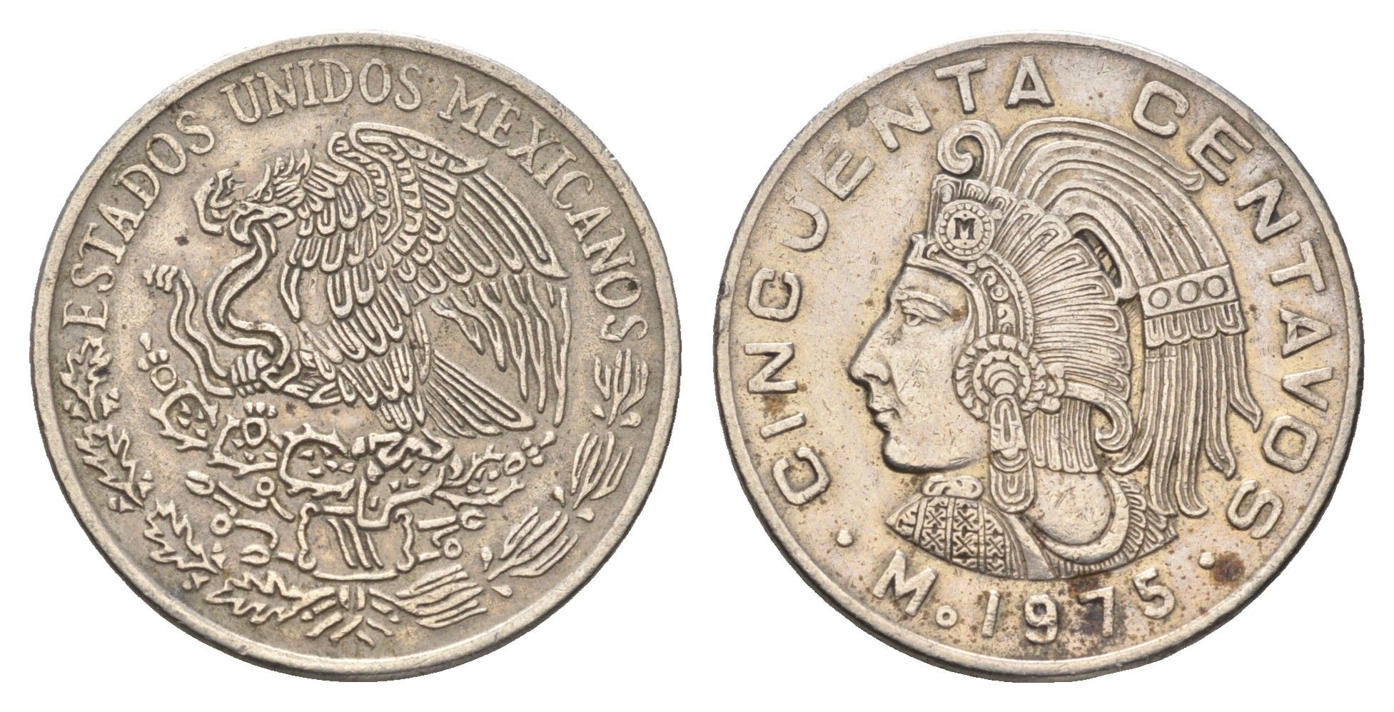 ----Мексика 50 сентаво 1975 Куаутемок, последний правитель империи ацтеков KM 452 медно-никель 4663-1017