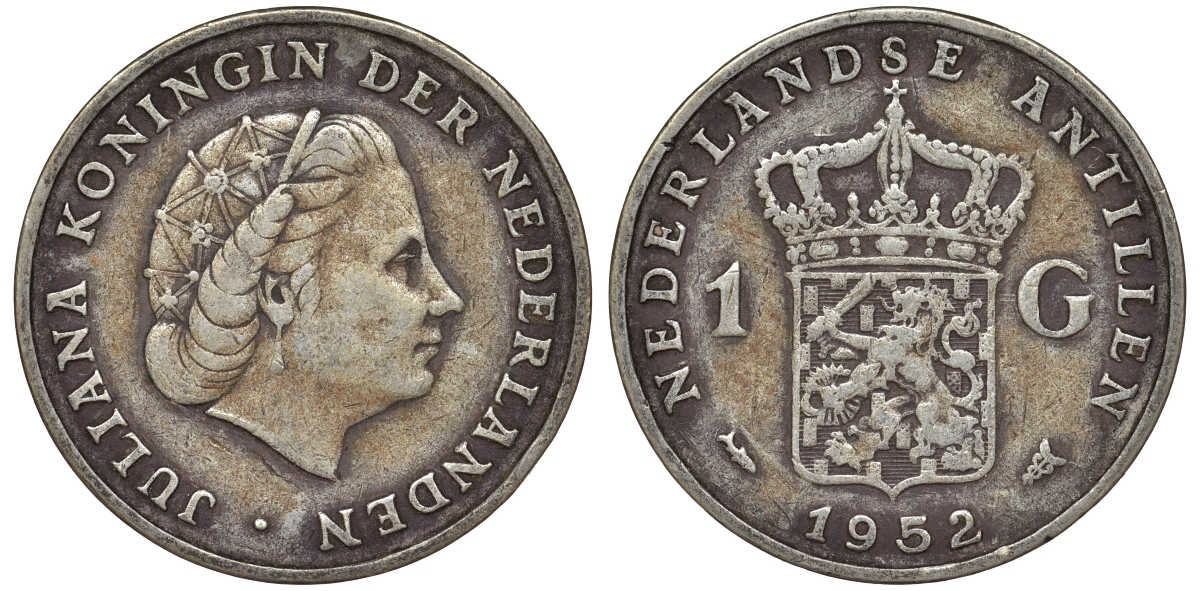 Нидерландские Антилы 1 гульден 1952 Юлиана (1948-1980) KM 2 серебро 36-1013