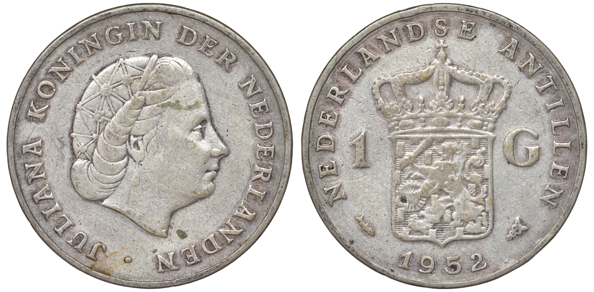 Нидерландские Антилы 1 гульден 1952 Юлиана (1948-1980) KM 2 серебро 36-1022