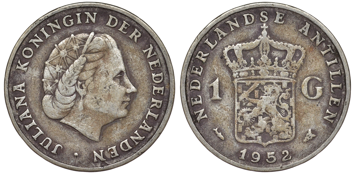 Нидерландские Антилы 1 гульден 1952 Юлиана (1948-1980) KM 2 серебро 36-817