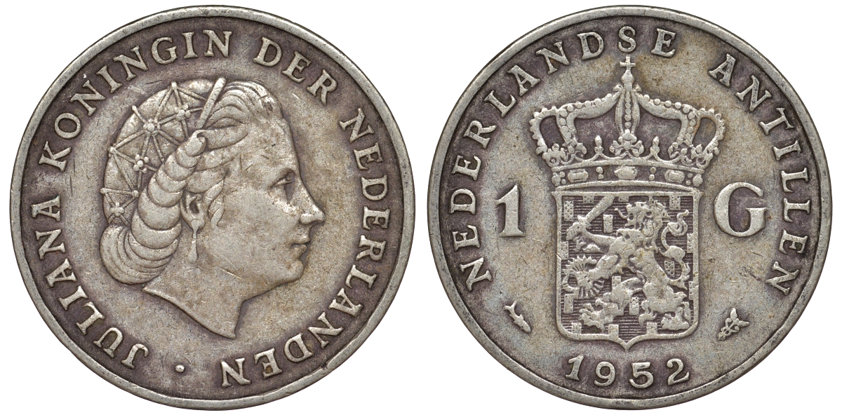 Нидерландские Антилы 1 гульден 1952 Юлиана (1948-1980) KM 2 серебро 36-836