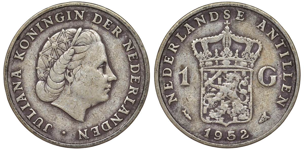 Нидерландские Антилы 1 гульден 1952 Юлиана (1948-1980) KM 2 серебро 36-842