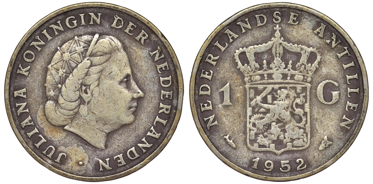 Нидерландские Антилы 1 гульден 1952 Юлиана (1948-1980) KM 2 серебро 36-843