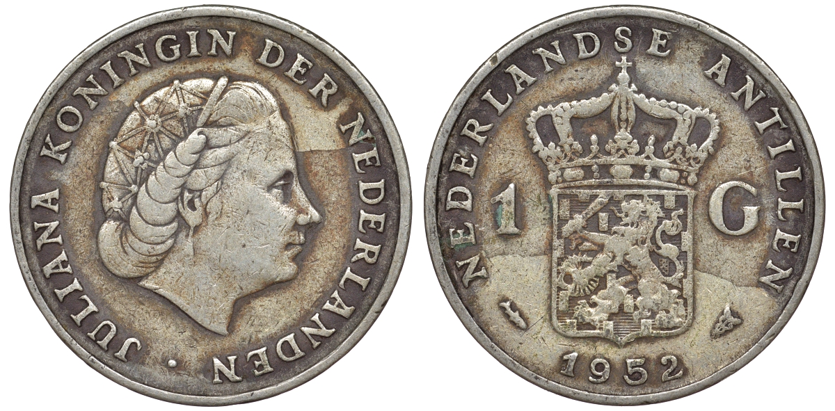 Нидерландские Антилы 1 гульден 1952 Юлиана (1948-1980) серебро 36-924