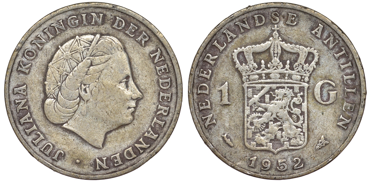 Нидерландские Антилы 1 гульден 1952 Юлиана (1948-1980) серебро 36-932