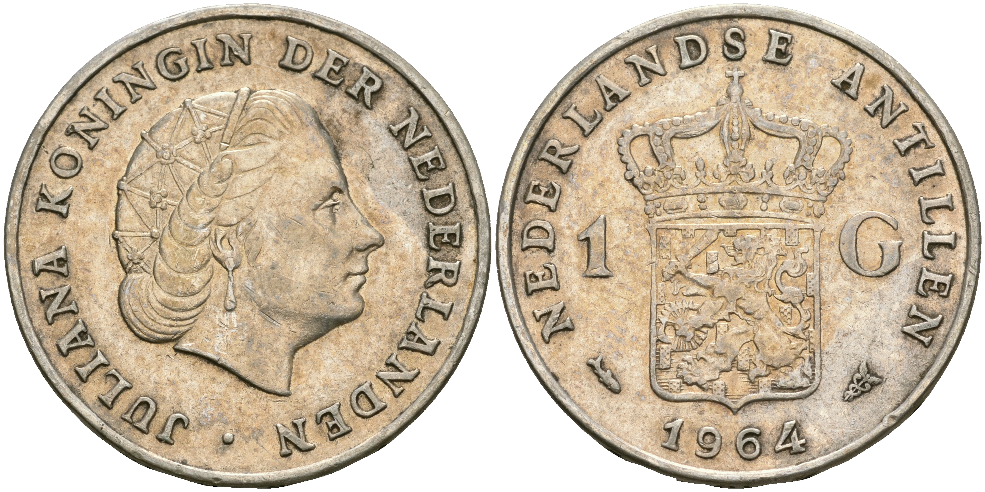 Нидерландские Антилы 1 гульден 1964 Юлиана (1948-1980) серебро 08-423