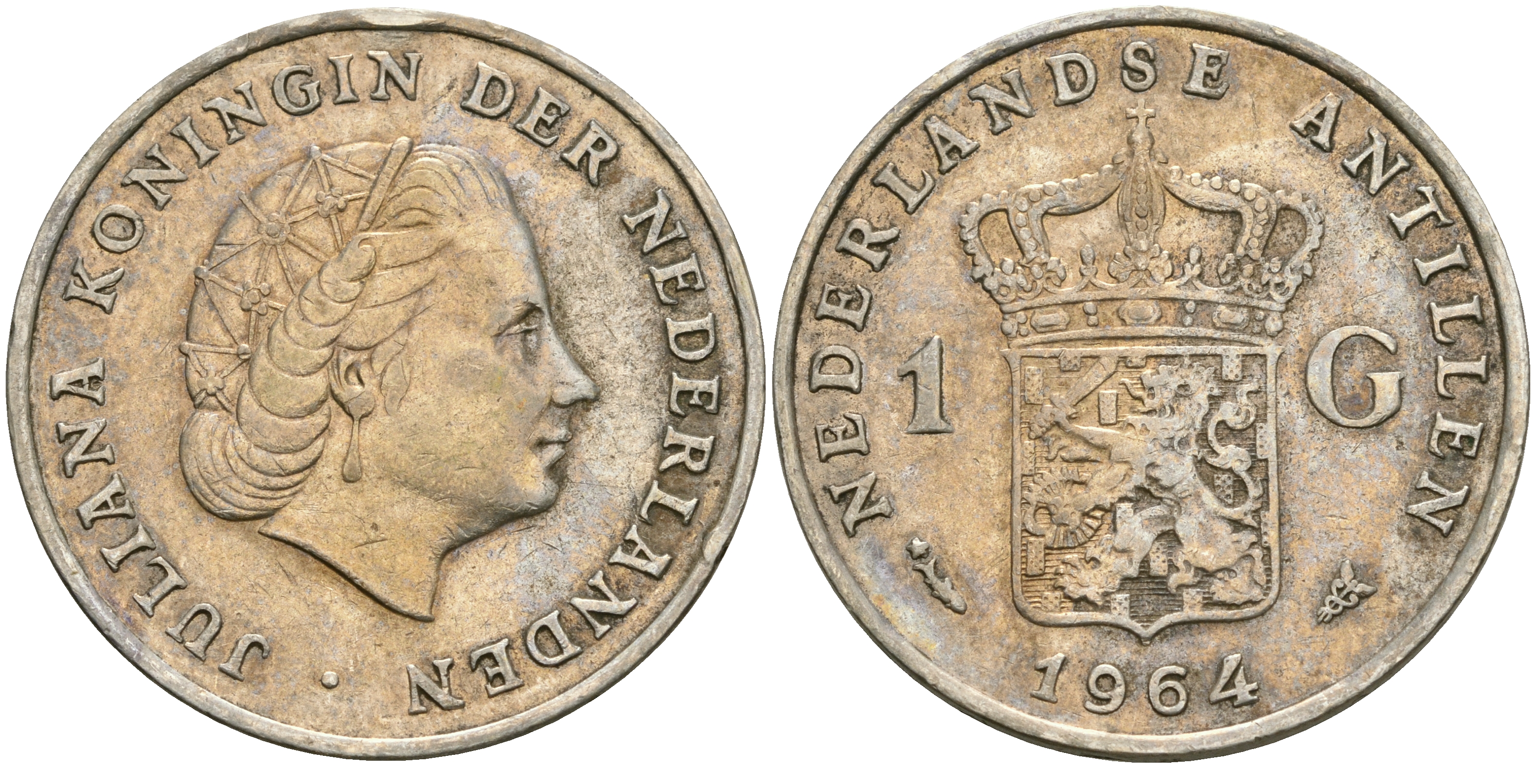 Нидерландские Антилы 1 гульден 1964 Юлиана (1948-1980) серебро 08-433