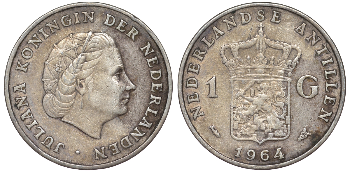 Нидерландские Антилы 1 гульден 1964 Юлиана (1948-1980) серебро 36-1042